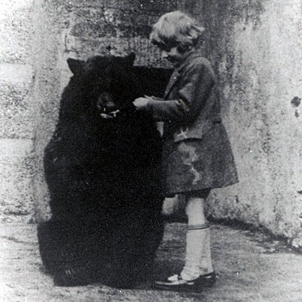 A black bear named Winnie—short for Winnipeg, as she had come from Canada—was an inspiration for the character. Winnie had resided at the London Zoo, and Milne's son, Christopher Robin Milne, liked to visit her; he even had the opportunity to feed her honey. Christopher named his own teddy bear Winnie the Pooh, after the real-life Winnie, as well as after a swan named Pooh, that the Milne's had seen while on vacation. Christopher's bear actually had originally been named Edward, and had been purchased at Harrods in London.