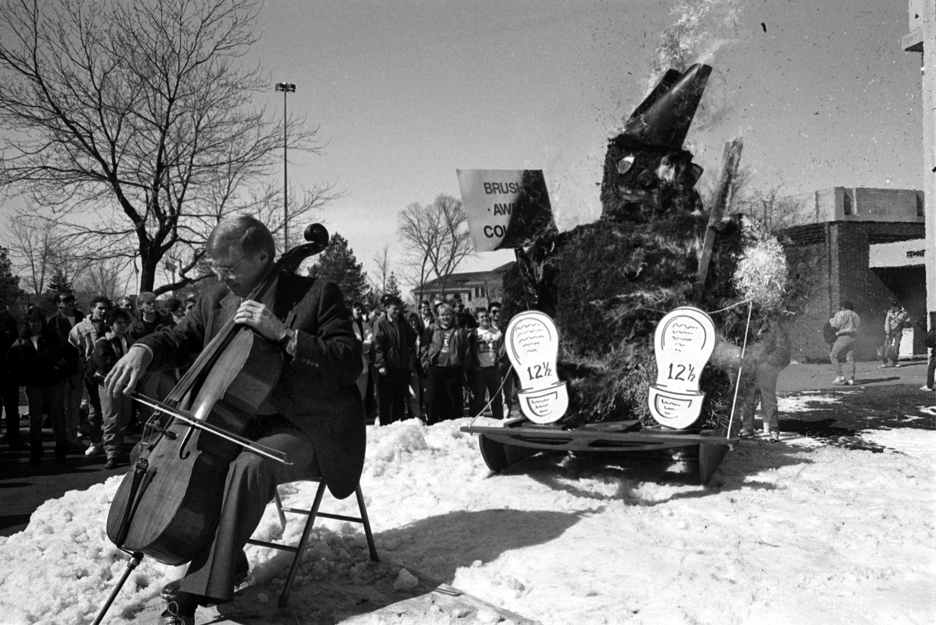 The event was once canceled, in 1992, after the campus's Environmental Awareness Club brought their concerns to the University on the day before the event was to be held. Many residents, business people, and local politicians were furious about the abrupt cancellation. Reporters interviewed students on campus, and students gathered at the spot where the event was to be held, to read poetry, hand out daffodils, and call for the snowman's burning. The event was started back up the following year and has continued since.